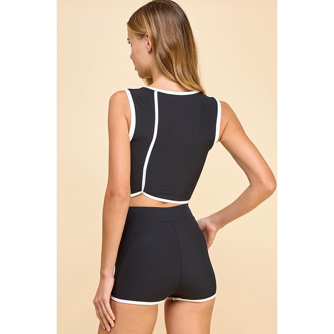 Serve major sporty spice energy in the Game Day Glam Set! This sleek black and white duo features a bold contrast-trim crop top with an edgy curved hem, paired with high-rise shorts that hug in all the right places. Whether you're hitting the gym, the tailgate, or just the group chat, this set is made to move with you—and turn heads while doing it.