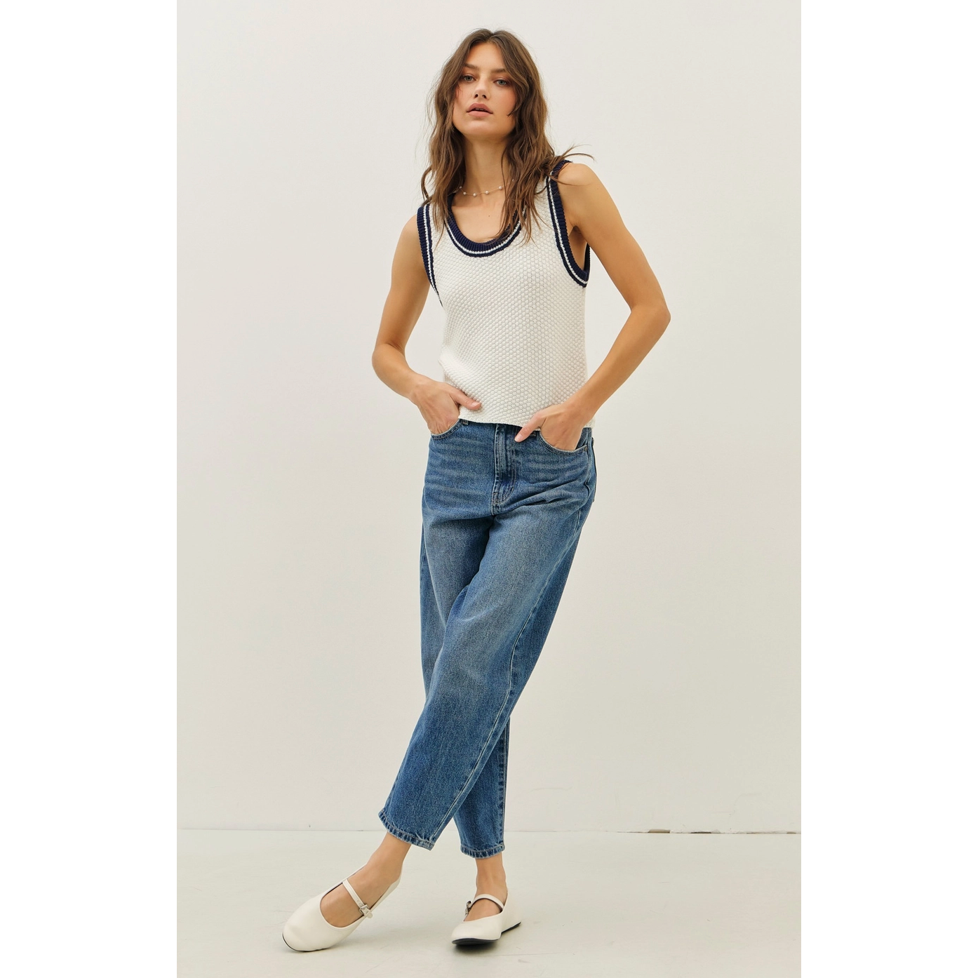 Perfect for layering or wearing solo, pair it with high-waisted denim for a casual day out or dress it up with a blazer. Whether you're going for the preppy nostalgia or modern minimalism, this tank is the perfect blend of comfort and edge.